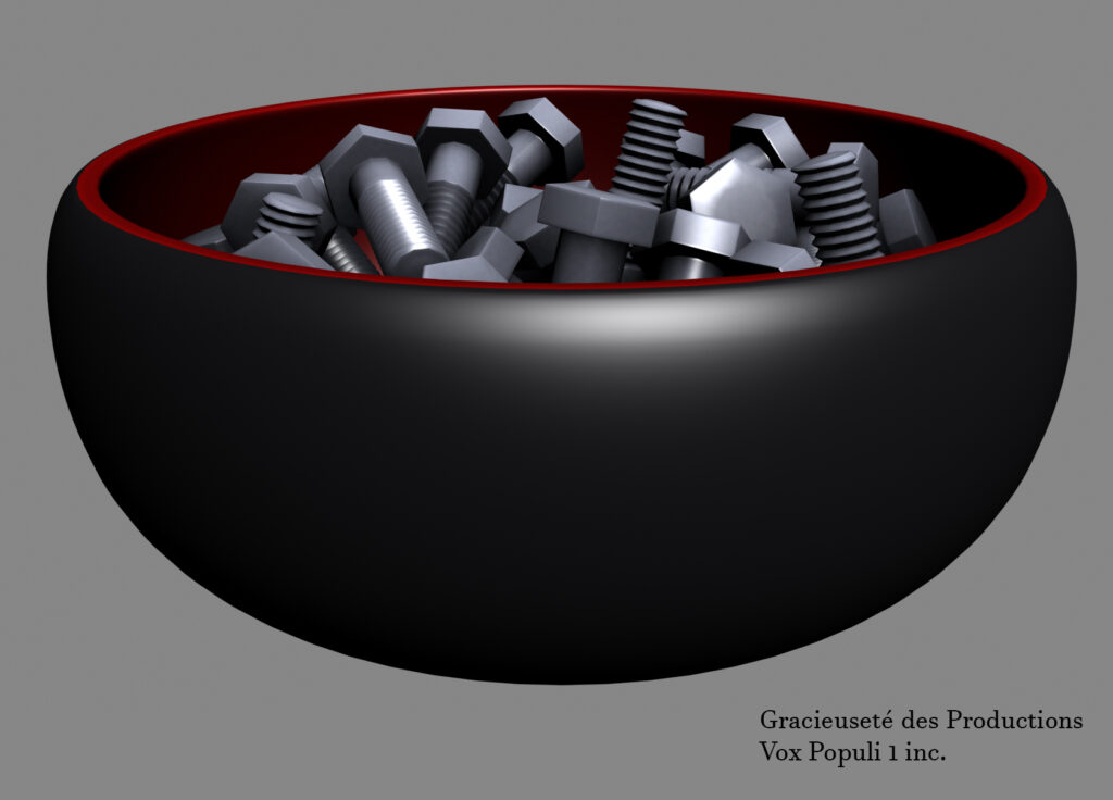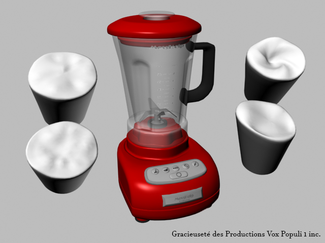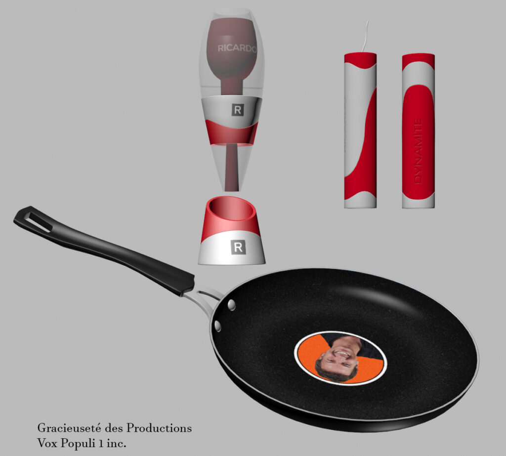 Échantillons d'objets 3D créés pour la série intitulée « ICI LAFLAQUE, saison 14 », en travaillant sous contrat pour les Productions Vox Populi 1 Inc. à l'automne 2017.